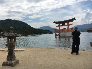 どうしようかと、考えながら海越しの厳島神社を眺めてると、潮の引いた状態も観たい!